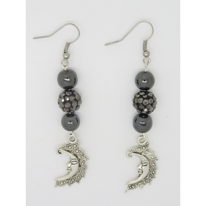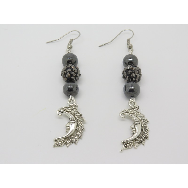 BOUCLES D'OREILLES CLIP OU OREILLES PERCÉES HÉMATITE, NOIRE ET LUNE IDÉE CADEAU MAMAN, AMIE, COPINE, MARRAINE,