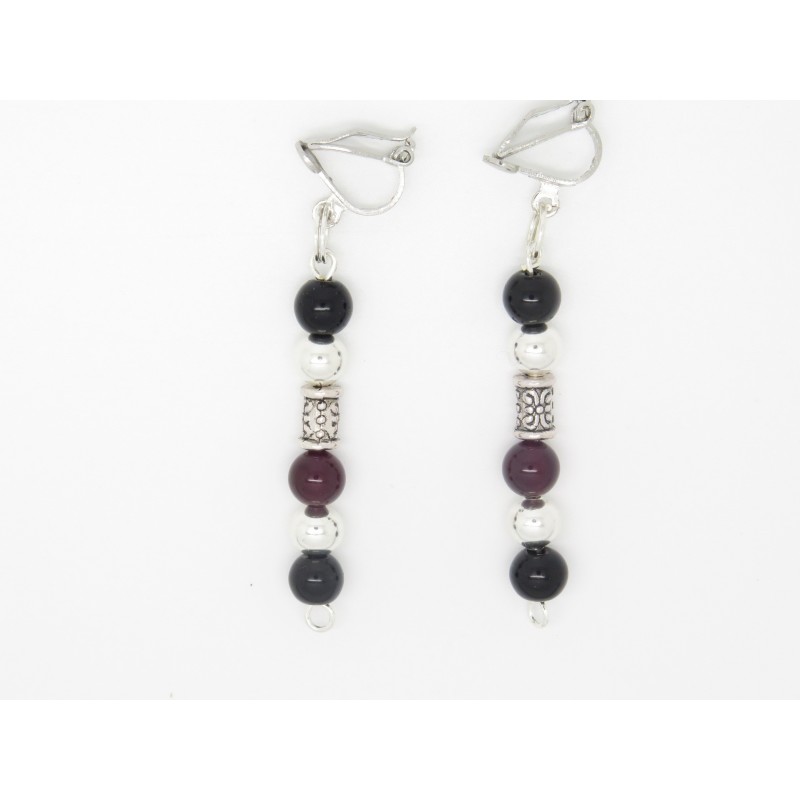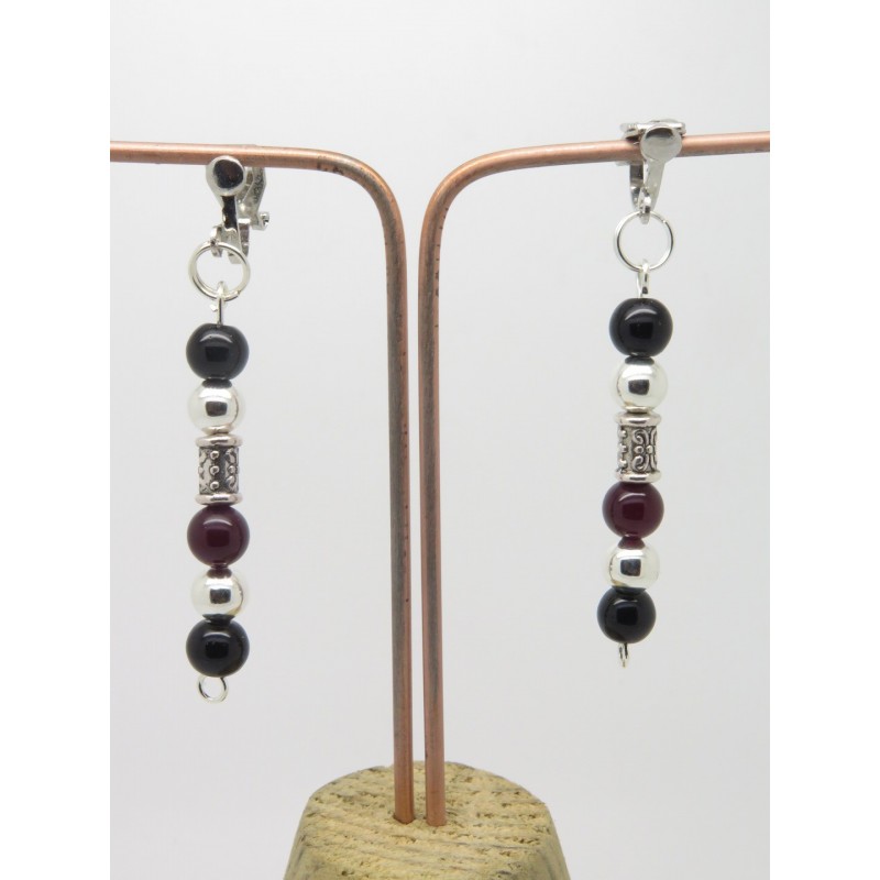 BOUCLES D'OREILLES CLIP OU OREILLE PERCÉES EN AGATE ET METAL ARGENTE IDÉE CADEAU