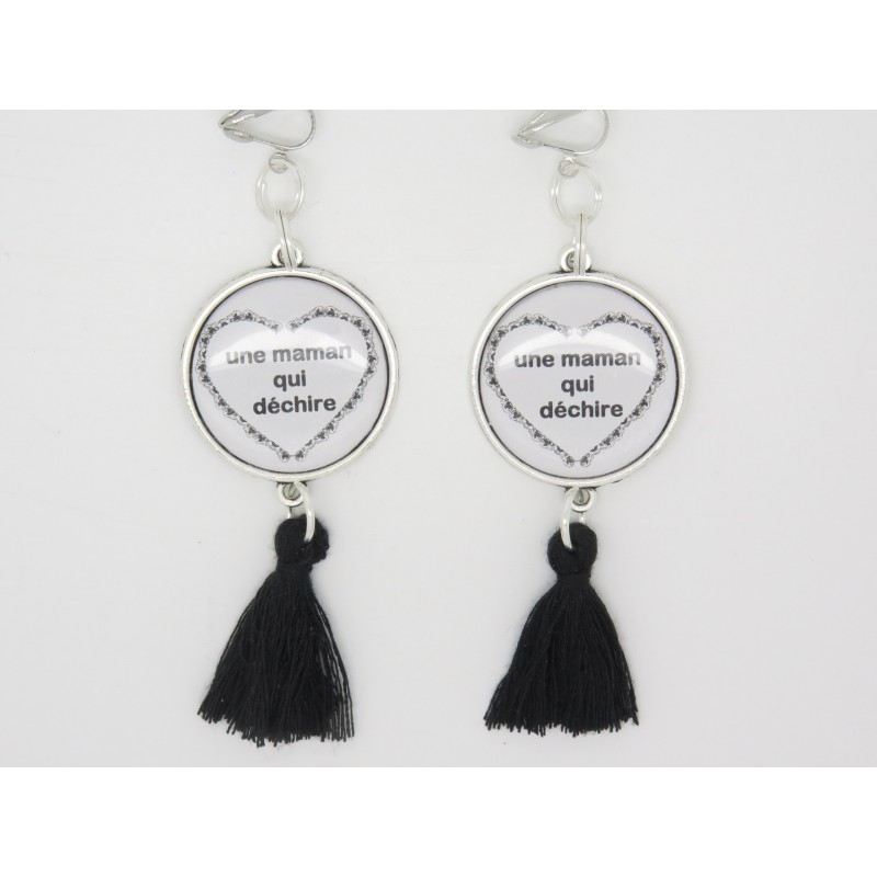 BOUCLES D'OREILLES PERSONNALISABLE CLIP OU OREILLE PERCÉE une maman qui déchire pour fête des mères, anniversaire...