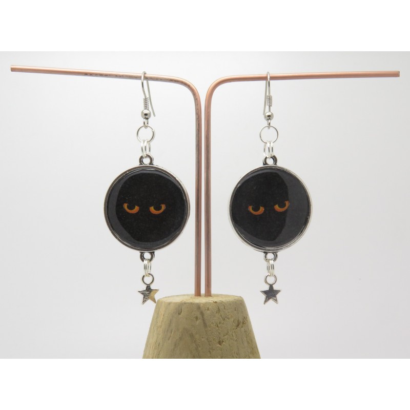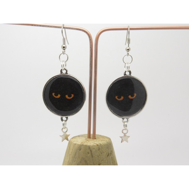 BOUCLES D'OREILLES AVEC CABOCHON THÈME CHAT option clip ou oreille percées