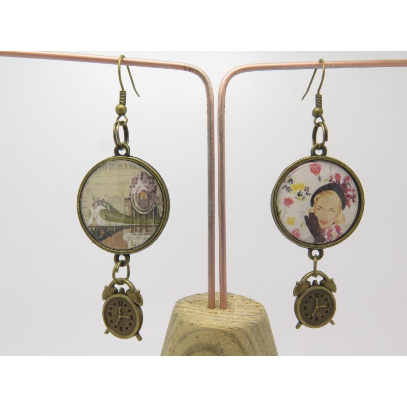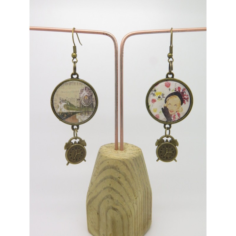 BOUCLES D'OREILLES style rétro et vintage AVEC CABOCHON THÈME steampunk