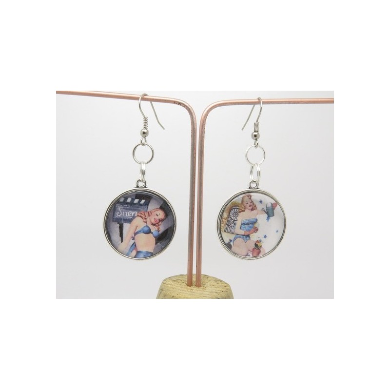 BOUCLES D'OREILLES style rétro et vintage AVEC CABOCHON THÈME PIN UP option clip ou oreille percées