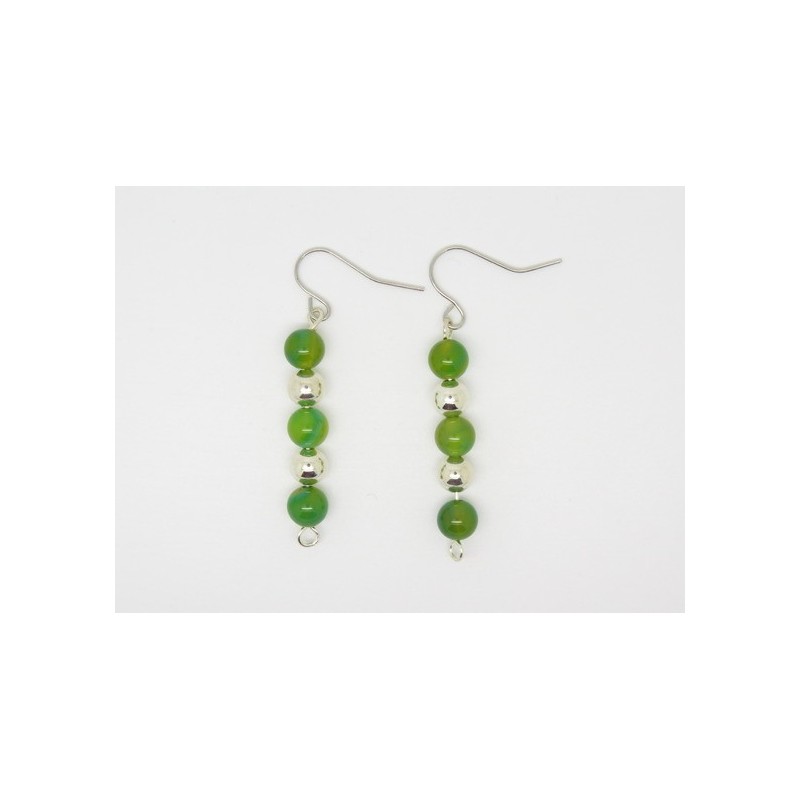 Elles sont constituées de perles en agate de couleur verte (L'agate est la pierre idéale pour harmoniser l'énergie et d'apaiser nos lieux de vie ou lieux professionnels,L'agate est une pierre apaisante, calmante qui agit en douceur) avec des perles en métal argenté .